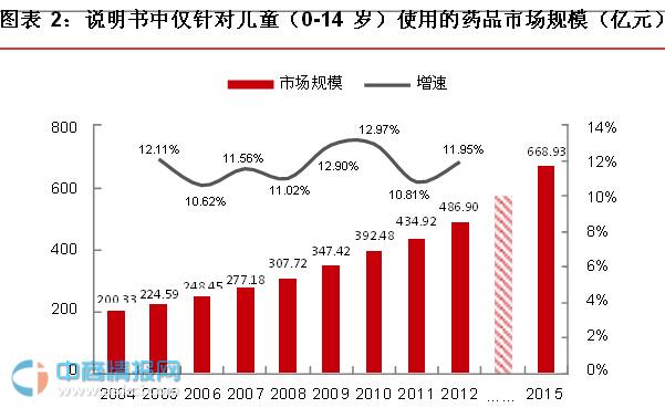 我國廣義兒童用藥市場(chǎng)過千億,市場(chǎng)增速較快,增速有望持續(xù)。目前兒童用藥成人化現(xiàn)象嚴(yán)重,據(jù)南方所數(shù)據(jù),廣義的市場(chǎng)規(guī)模是狹義市場(chǎng)的兩倍。從2004年以來,兒童用藥市場(chǎng)一直保持10%以上的增速,CAGR為11.58%,預(yù)計(jì)到2015年狹義和廣義的兒童用藥市場(chǎng)分別會(huì)達(dá)到669和1338億元。