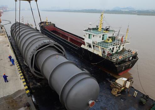 11月3日,制造加工重量160余噸、設(shè)備最大直徑6.4米、長(zhǎng)近48米的中國(guó)石化北海煉化產(chǎn)品質(zhì)量升級(jí)改造項(xiàng)目項(xiàng)目500萬(wàn)噸/年原料預(yù)處理裝置一級(jí)減壓塔,在鎮(zhèn)海大件碼頭順利裝船。