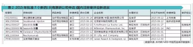 處于批準(zhǔn)臨床階段的3個(gè)新藥是:Alectinib膠囊、Daclatasvir Dihydrochloride片、Necitumumab,還需要等待相對(duì)漫長(zhǎng)的審評(píng)時(shí)間。