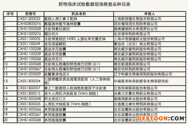 5月4日,國家食品藥品監(jiān)督管理總局食品藥品審核查驗(yàn)中心官網(wǎng)發(fā)布藥物臨床試驗(yàn)數(shù)據(jù)現(xiàn)場核查計(jì)劃公告(第2號)。公告稱,根據(jù)《國家食品藥品監(jiān)督管理總局藥物臨床試驗(yàn)數(shù)據(jù)核查工作程序(暫行)》(食藥監(jiān)藥化管〔2016〕34號)要求,計(jì)劃對重組人凋亡素2配體等20個(gè)藥物臨床試驗(yàn)數(shù)據(jù)自查核查品種(詳見附件)開展現(xiàn)場核查,現(xiàn)予公示。公示期為10個(gè)工作日,即2016年5月4日至2016年5月17日。