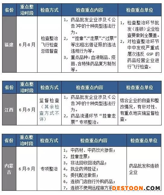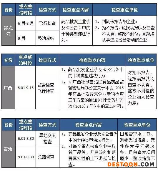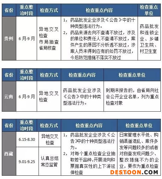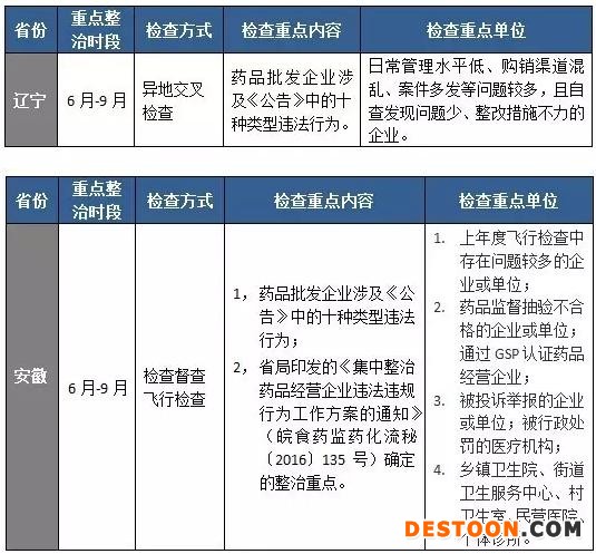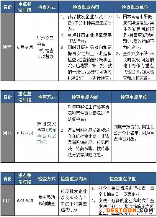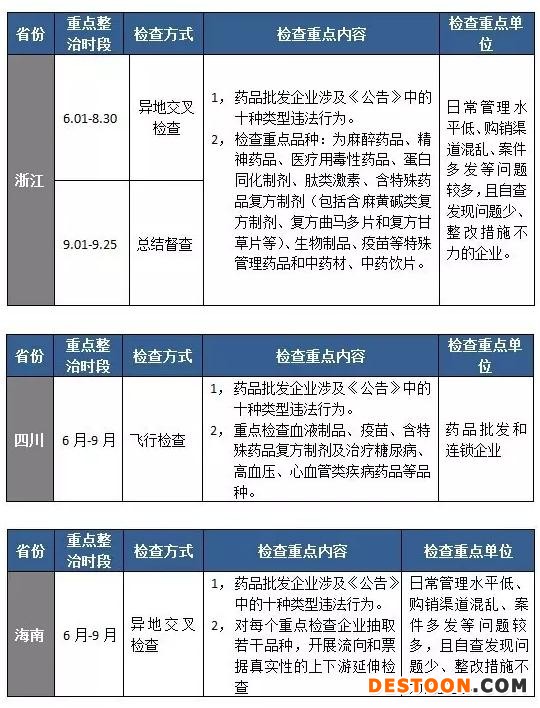2016年05月31日-09月30日期間,企業(yè)自查結(jié)束,各省藥監(jiān)局將開展暗訪檢查和集中整治。但是由于各省專項(xiàng)整治時(shí)間跨度不一,實(shí)際區(qū)域狀況也不同,所以每個(gè)區(qū)域的藥品經(jīng)營企業(yè)對(duì)照起來還是比較困難的。