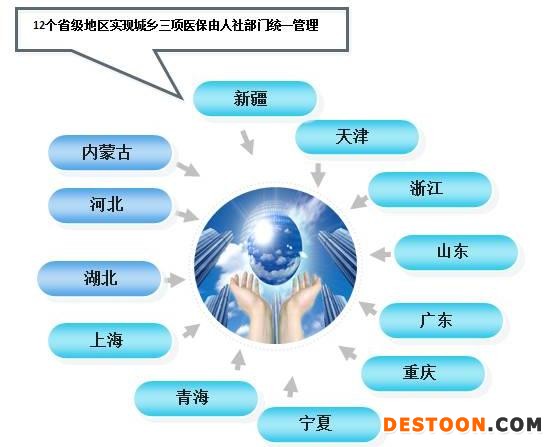 在《關(guān)于整合城鄉(xiāng)居民基本醫(yī)療保險制度的意見》印發(fā)前,已有九個城市在全省范圍實現(xiàn)醫(yī)療保險城鄉(xiāng)統(tǒng)籌,至此,全國已有12個省級地區(qū)實現(xiàn)城鄉(xiāng)三項醫(yī)保由人社部門統(tǒng)一管理。