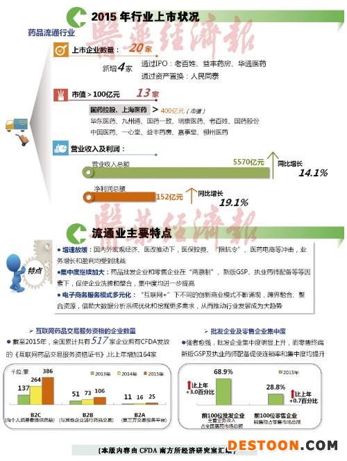 近期,商務部發(fā)布了2015年的藥品流通行業(yè)運行統(tǒng)計分析報告,從報告可見,2015年藥品流通在國內外經(jīng)濟大環(huán)境下,在醫(yī)藥改革不斷縱深推進中,”互聯(lián)網(wǎng)+”催生業(yè)態(tài)多元化、新模式、新技術的挑戰(zhàn),行業(yè)整體發(fā)展雖然進入增速趨緩階段?;ヂ?lián)網(wǎng)下的跨界融合,也給醫(yī)藥流通行業(yè)向綜合服務提供商轉型升級帶來契機。