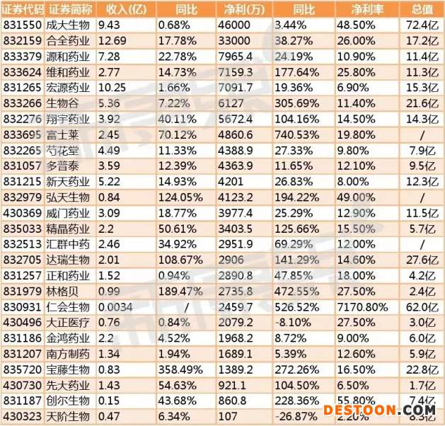 6月18日,新三板創(chuàng)新層名單公布,共有920家公司入圍創(chuàng)新層。據(jù)新康界統(tǒng)計(jì),其中醫(yī)藥制造與流通企業(yè)數(shù)量為26家,凈利潤過億元企業(yè)共2家,分別是成大生物及合全藥業(yè)。CRO企業(yè)合全藥業(yè),2015年實(shí)現(xiàn)營收12.69億元,同比增長18%;凈利潤3.3億元,同比增長38%,業(yè)績增長主要是由于醫(yī)藥研發(fā)外包服務(wù)市場持續(xù)發(fā)展。