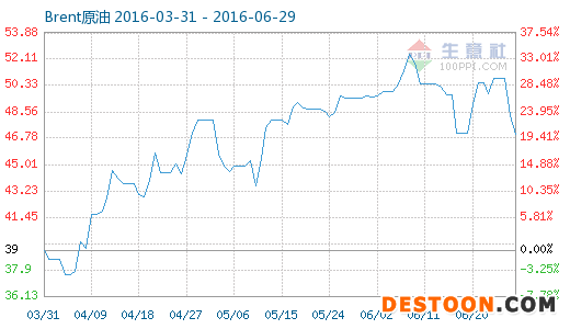 6月29日Brent原油商品指數(shù)為48.48,較昨日上升了1.41點,較周期內(nèi)最高點100.00點(2014-09-09)下降了51.52%,較2016年01月21日最低點27.82點上漲了74.26%。(注:周期指2014-09-09至今)