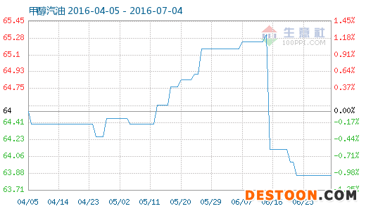 7月3日甲醇汽油商品指數(shù)為63.86,與昨日持平,創(chuàng)下周期內(nèi)的歷史新低,較2012年09月18日最高點111.01點下降了42.47%。(注:周期指2011-09-01至今)
