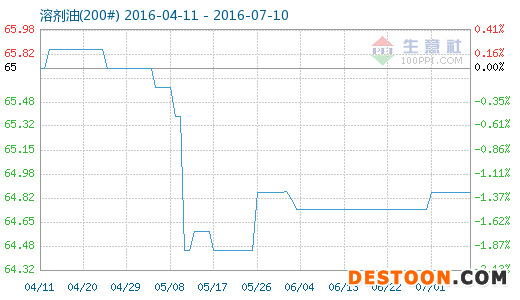 7月10日溶劑油(200#)商品指數(shù)為64.86,與昨日持平,較周期內(nèi)最高點103.41點(2012-09-23)下降了37.28%,較2016年05月25日最低點64.46點上漲了0.62%。(注:周期指2012-09-01至今)