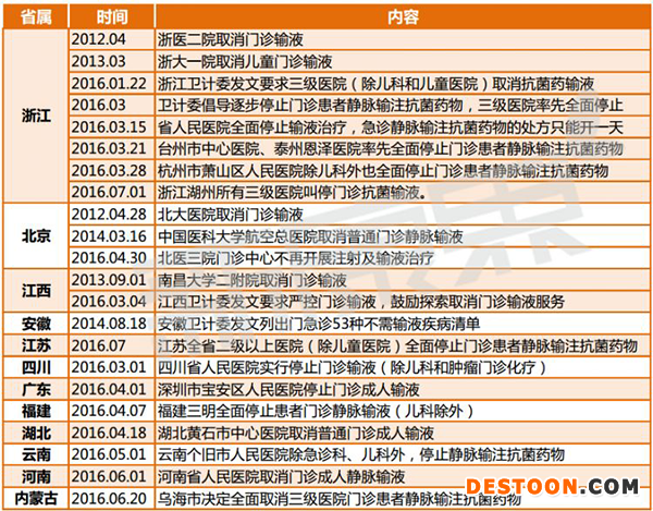 從2012年開始,各地就已經(jīng)陸續(xù)有叫停門診輸液的單個(gè)醫(yī)院,而到了今年則成為全國蔓延的大趨勢(shì),這對(duì)于以輸液相關(guān)藥品為主營業(yè)務(wù)的企業(yè)無疑將產(chǎn)生巨大影響。