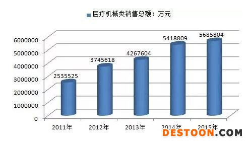 2011-2015年全國醫(yī)療器械類銷售總額