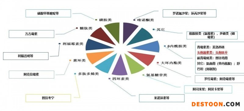 注:磺胺類(lèi)及喹諾酮類(lèi)是人工合成的抗感染藥物,嚴(yán)格意義上不屬于抗生素。