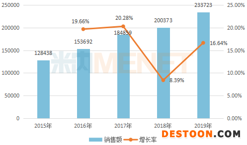 米內(nèi)網(wǎng)數(shù)據(jù)顯示,2019年中國城市公立醫(yī)院、縣級公立醫(yī)院、城市社區(qū)中心以及鄉(xiāng)鎮(zhèn)衛(wèi)生院(簡稱中國公立醫(yī)療機(jī)構(gòu))終端鹽酸溴己新銷售額為23.04億元,同比下滑1.22%,其中注射劑銷售占比超九成。