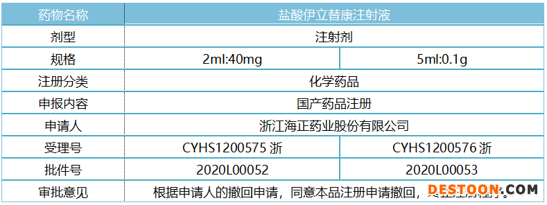 中國醫(yī)藥化工網(wǎng)7月2日訊 6月30日,海正藥業(yè)發(fā)布公告稱,收到國家藥監(jiān)局關(guān)于公司主動(dòng)申請(qǐng)撤回鹽酸伊立替康注射液藥品注冊(cè)申請(qǐng)的《審批意見通知件》,公司于2012年5月9日按原化藥6類向浙江省藥監(jiān)局提交注冊(cè)申請(qǐng)并獲得受理,截至目前公司在該產(chǎn)品研發(fā)項(xiàng)目上已投入301.17萬元左右。