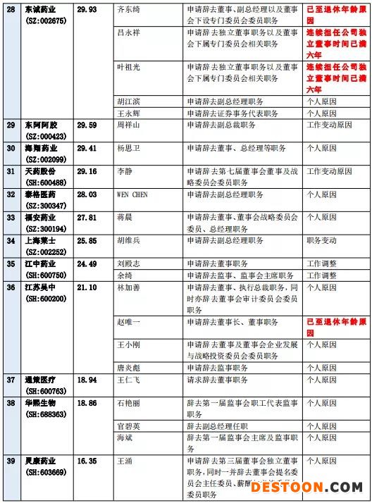 其中,復星醫(yī)藥、東北制藥、九芝堂、東誠藥業(yè)、江蘇吳中、力生制藥6家藥企高管離職人數(shù)在4人或4人以上。