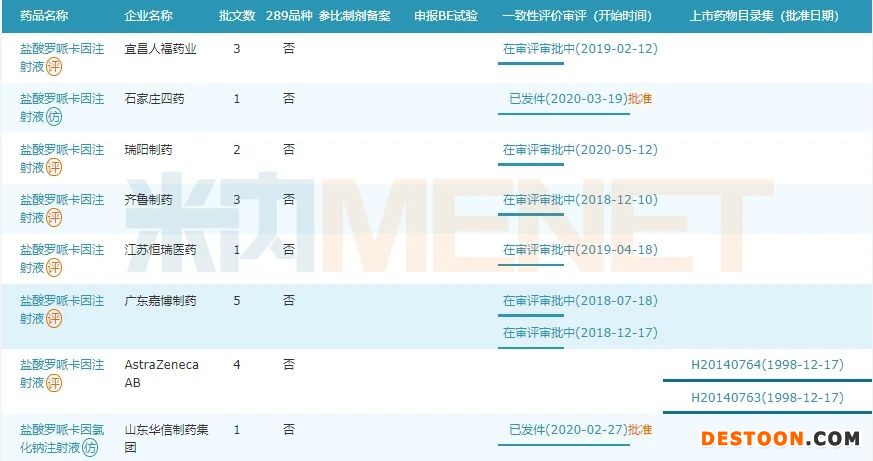 山東華信制藥的鹽酸羅哌卡因氯化鈉注射液、石四藥的鹽酸羅哌卡因注射液的4類仿制上市申請分別于2020年2月、3月獲批并視同過評。此外,目前人福、瑞陽、齊魯、恒瑞、嘉博等5家藥企的鹽酸羅哌卡因注射液一致性評價補充申請正在審評審批中。