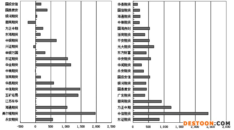 當(dāng)日,空頭前20席位中,增持的席位有20家,沒有一家席位減持。增持方面,中信期貨席位、方正中期席位、東證期貨席位和徽商期貨席位增持?jǐn)?shù)量居前,分別大幅增加2410手、1220手、909手和844手。同時(shí),廣發(fā)期貨席位、國(guó)泰君安席位、銀河期貨席位、國(guó)投安信席位、永安期貨席位、華聞期貨席位、東方財(cái)富席位、光大期貨席位、平安期貨席位、浙商期貨席位、國(guó)海良時(shí)席位、中糧期貨席位、海通期貨席位、國(guó)信期貨席位和華泰期貨席位增持?jǐn)?shù)量也較多,分別增加383手、428手、417手、537手、341手、268手、567手、422手、669手、521手、377手、530手、202手、227手、209手和146手。