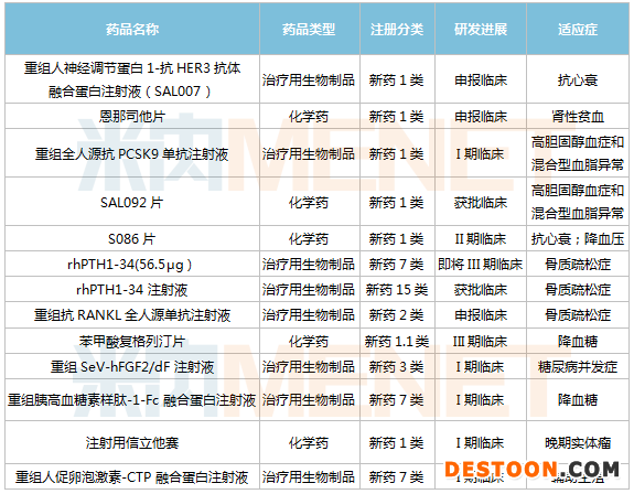 米內(nèi)網(wǎng)數(shù)據(jù)顯示,目前信立泰主要在研新藥有13個(gè),包括小分子化學(xué)藥和生物藥。治療腎性貧血藥恩那司他計(jì)劃今年開展國(guó)內(nèi)臨床III期,2021年申報(bào)上市,2020年底上市,有望成為信立泰第2個(gè)專利藥;降血糖藥復(fù)格列汀已進(jìn)入臨床III期;骨科產(chǎn)品長(zhǎng)效特立帕肽即將進(jìn)入臨床III期;抗心衰藥S086已進(jìn)入臨床II期。降血脂藥SAL092片已獲批開展 I 期臨床試驗(yàn),PCSK9抑制劑已啟動(dòng) I 期臨床。