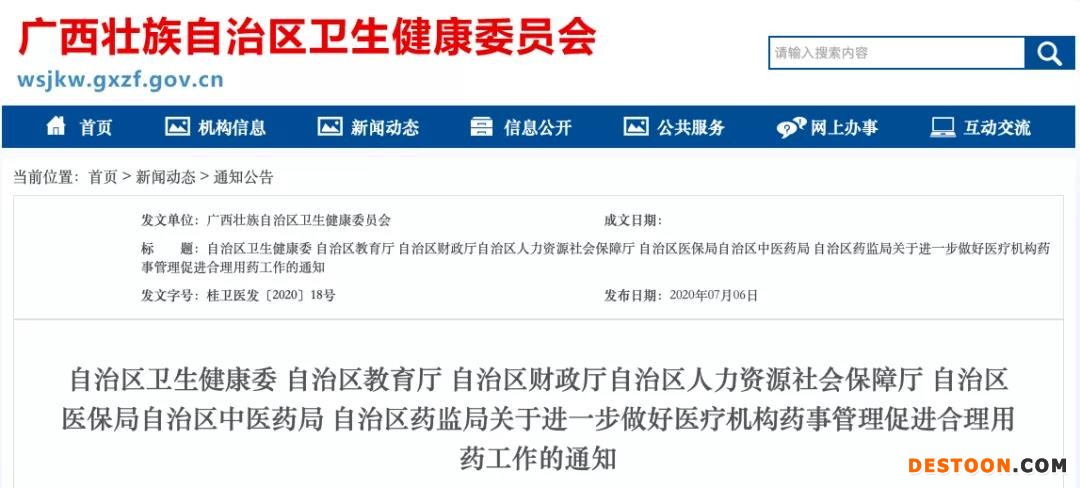 7月6日,廣西自治區(qū)衛(wèi)健委等七部門發(fā)布《關(guān)于進(jìn)一步做好醫(yī)療機(jī)構(gòu)藥事管理促進(jìn)合理用藥工作的通知》(以下簡稱《通知》)。