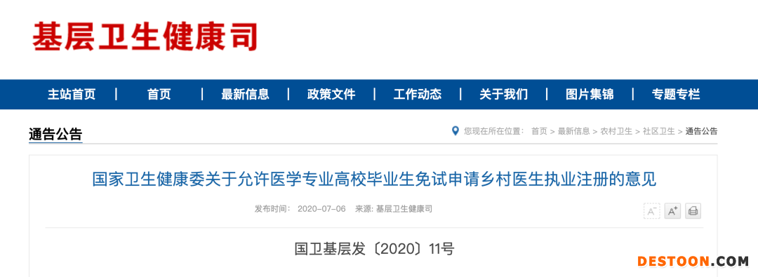國家衛(wèi)生健康委關(guān)于允許醫(yī)學(xué)專業(yè)高校畢業(yè)生免試申請鄉(xiāng)村醫(yī)生執(zhí)業(yè)注冊的意見