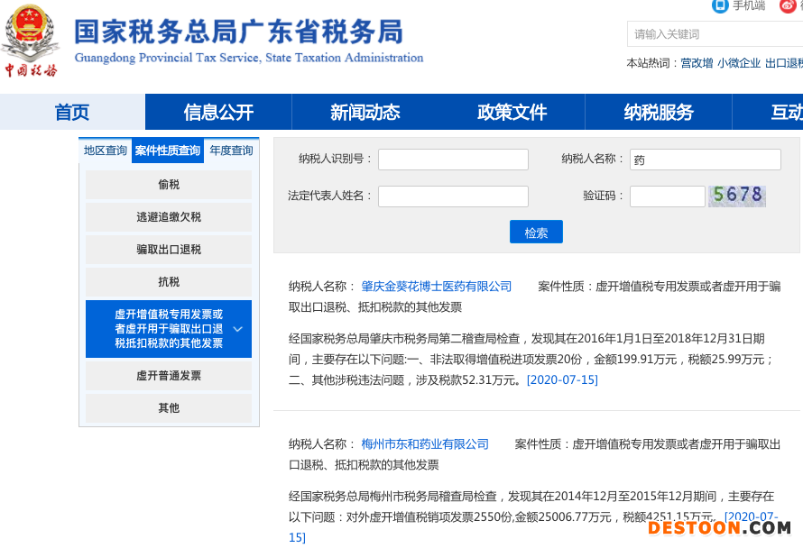 以廣東省為例,僅7月15日公布的有關(guān)醫(yī)藥企業(yè)涉嫌虛開增值稅專用發(fā)票的案件,就多達(dá)7例。