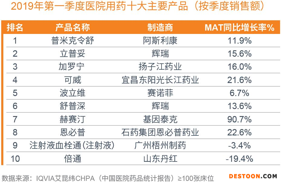 有升則有降,阿斯利康的泰瑞沙、賽諾菲的來得時和拜耳的拜復樂都首次進入該榜單。