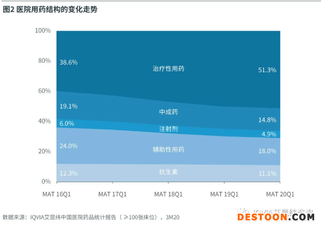 此前,醫(yī)保政策曾限制非藥品類在藥店銷售,造成保健品類別2019年的增速下降8%。結(jié)合這一案例,IQVIA預(yù)測,此番醫(yī)保目錄調(diào)整方案一旦落地,在未來3-5年將對OTC和零售藥店造成巨大沖擊——OTC藥品分為治療性用藥和預(yù)防性用藥,治療性用藥的需求持續(xù)存在。對照醫(yī)院市場,藥品在今年一季度疫情影響同比增速顯著下降的情況下,治療性用藥依然保持高于市場平均的增幅。如果目錄調(diào)整如期落地,這部分OTC的治療需求或回到醫(yī)療機(jī)構(gòu)由處方藥替代。盡管隨著處方外流的推進(jìn)最終依然會(huì)流向零售渠道,但是這將經(jīng)歷一個(gè)“顧客先回流醫(yī)療機(jī)構(gòu),主要是社區(qū)醫(yī)院,之后再返流至藥店和電商”的過程,短期內(nèi)對OTC和線下零售藥店會(huì)造成較大的影響。(參見圖2)