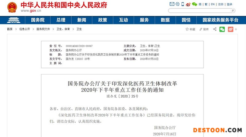 醫(yī)藥網(wǎng)7月24日訊 7月23日,國務(wù)院辦公廳印發(fā)《深化醫(yī)藥衛(wèi)生體制改革2020年下半年重點工作任務(wù)》,其中提到了加強公共衛(wèi)生體系建設(shè)、深入實施健康中國行動、深化公立醫(yī)院綜合改革、健全藥品供應(yīng)保障體系……