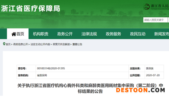 浙江省醫(yī)療機(jī)構(gòu)心胸外科類和麻醉類醫(yī)用耗材集中采購(第二階段)中標(biāo)結(jié)果適用于全省所有公立醫(yī)療機(jī)構(gòu)。