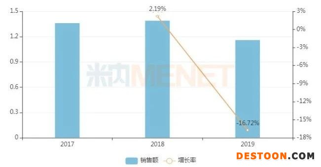近年中國城市零售藥店婦科千金片銷售情況(單位:億元)