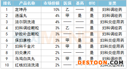 2019年中國城市零售藥店中成藥婦科用藥產品TOP10