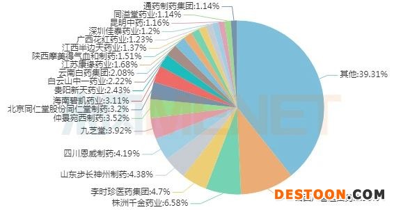 從TOP20廠家銷售格局來看,山西廣譽遠國藥、株洲千金藥業(yè)、李時珍醫(yī)藥集團、山東步長神州制藥、四川恩威制藥位居前五,市場份額合計近30%。