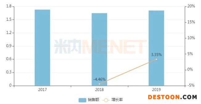 近年中國城市零售藥店定坤丸劑銷售情況(單位:億元)