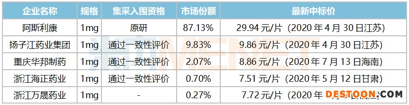 表1:2019年阿那曲唑片相關(guān)企業(yè)的競(jìng)爭(zhēng)情況