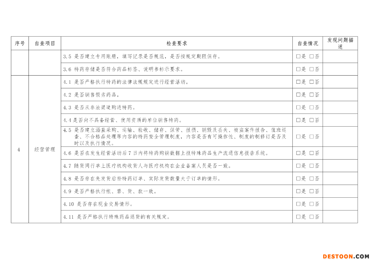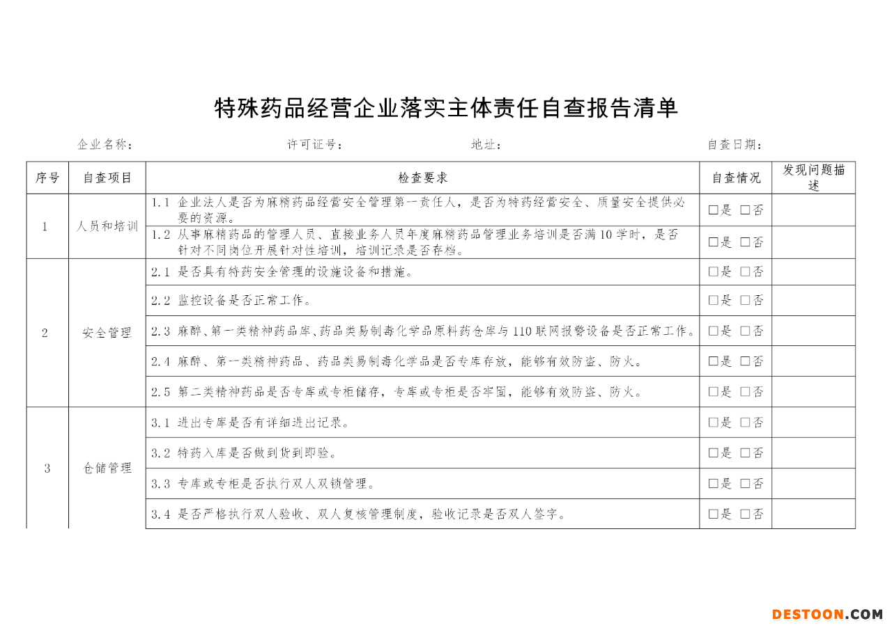 附:特殊藥品經(jīng)營企業(yè)落實主體責(zé)任自查報告清單