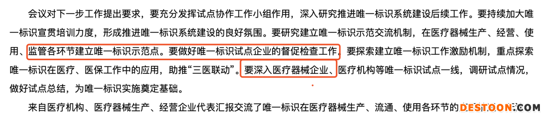 在本次會(huì)議上,國(guó)家藥監(jiān)局指出,將檢查醫(yī)療器械對(duì)醫(yī)療器械唯一標(biāo)識(shí)的落實(shí)情況。