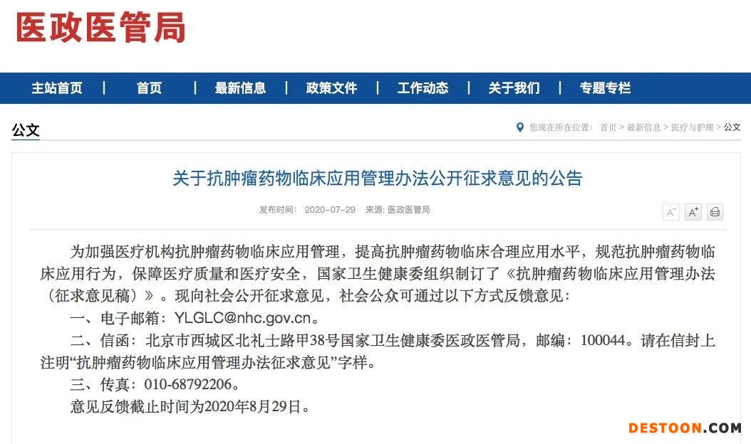 日前,國家衛(wèi)健委發(fā)布《抗腫瘤藥物臨床應(yīng)用管理辦法》(征求意見稿)(以下簡(jiǎn)稱《管理辦法》),旨在加強(qiáng)醫(yī)療機(jī)構(gòu)抗腫瘤藥物臨床應(yīng)用管理,提高抗腫瘤藥物臨床合理應(yīng)用水平,規(guī)范抗腫瘤藥物臨床應(yīng)用行為,保障醫(yī)療質(zhì)量和醫(yī)療安全。