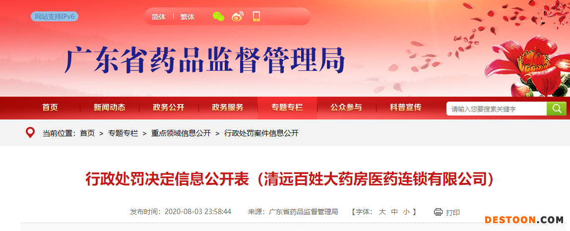 8月3日,廣東省藥監(jiān)公開了《行政處罰決定信息公開表》,一連鎖藥店因銷售假藥被處罰。