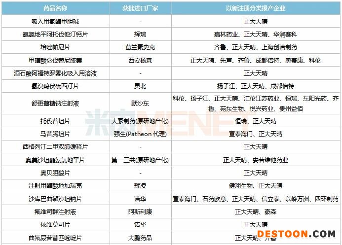 表4:正大天晴新分類報產(chǎn)且暫未有仿制藥獲批的品種
