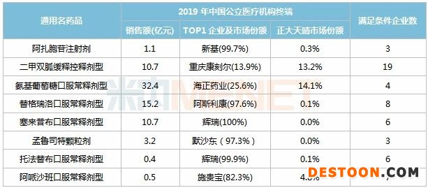 從2019年中國公立醫(yī)療機構(gòu)終端競爭格局看,有6個品種的市場由原研廠家主導(市場份額均在80%以上),正大天晴所占市場份額較低,如若能順利中標,將成為公司這些品種開拓市場的大好機會。