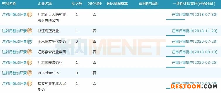 注射用替加環(huán)素也暫未有企業(yè)過評,6家企業(yè)已布局該產(chǎn)品一致性評價,包括奧賽康、正大天晴、豪森等。南京健友生化以新分類報產(chǎn),其余5家企業(yè)均提交一致性評價補充申請。