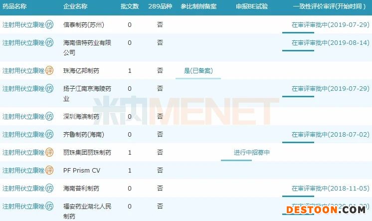 圖1:注射用伏立康唑一致性評價申報情況
