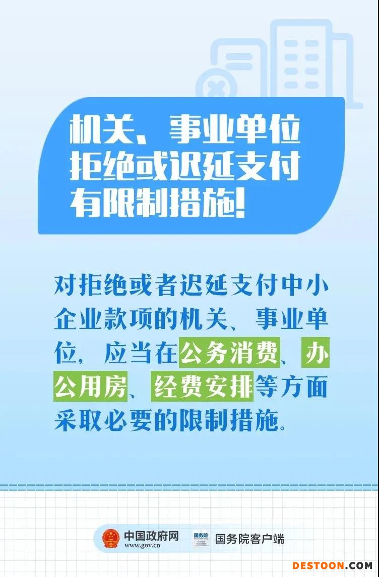 同樣明確要求,國(guó)家機(jī)關(guān)、事業(yè)單位和大型企業(yè)不得濫用其在交易中的優(yōu)勢(shì)地位,強(qiáng)迫中小企業(yè)接受不合理的支付期限、方式、條件和違約責(zé)任等交易條件。