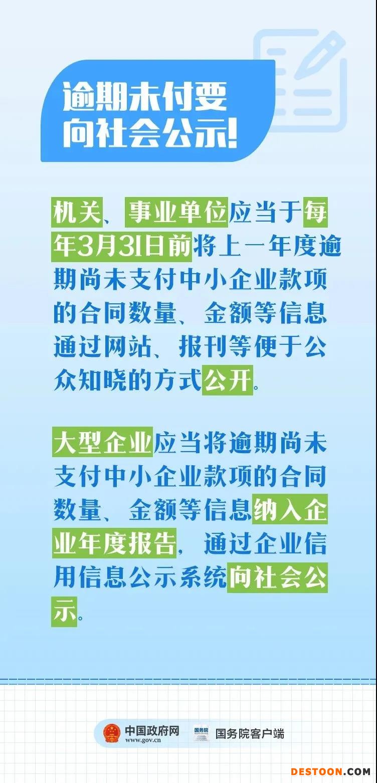 《條例》還要求機(jī)關(guān)、事業(yè)單位和大型企業(yè)不得要求中小企業(yè)接受不合理的付款期限、方式、條件和違約責(zé)任等交易條件,不得違約拖欠中小企業(yè)的貨物、工程、服務(wù)款項(xiàng)。