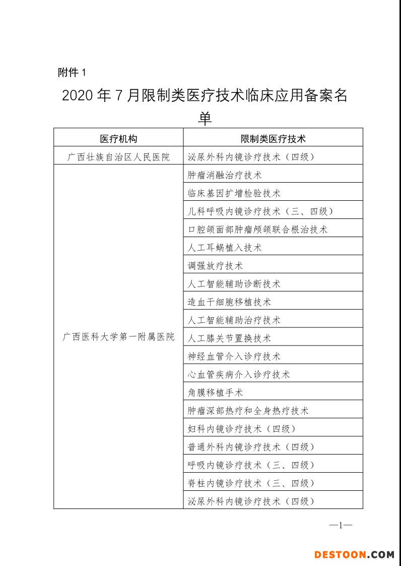 日前,廣西壯族自治區(qū)衛(wèi)生健康委辦公室公布“2020年7月限制類醫(yī)療技術(shù)臨床應(yīng)用備案名單的通知”(文末附完整目錄)。