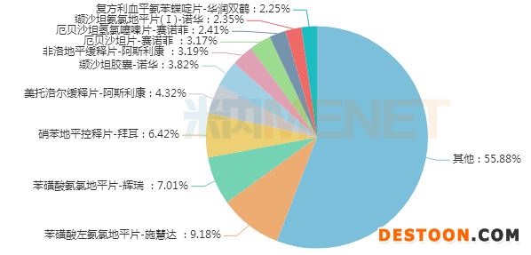 抗高血壓藥TOP10產(chǎn)品合計(jì)銷售額超過(guò)85億元,苯磺酸氨氯地平片、苯磺酸左氨氯地平片、硝苯地平控釋片年銷超10億元,其中苯磺酸氨氯地平片首次突破20億元;10個(gè)產(chǎn)品涵蓋3大治療小類,鈣通道阻滯劑獨(dú)占半壁江山;厄貝沙坦氫氯噻嗪片增速最快,說(shuō)明聯(lián)合用藥近年來(lái)受到越來(lái)越多的關(guān)注;8個(gè)產(chǎn)品由原研企業(yè)主導(dǎo)市場(chǎng),其中琥珀酸美托洛爾緩釋片暫未有仿制藥獲批上市。