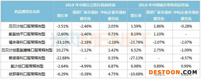 表1:2019年中國(guó)城市零售藥店終端抗高血壓化藥TOP10產(chǎn)品