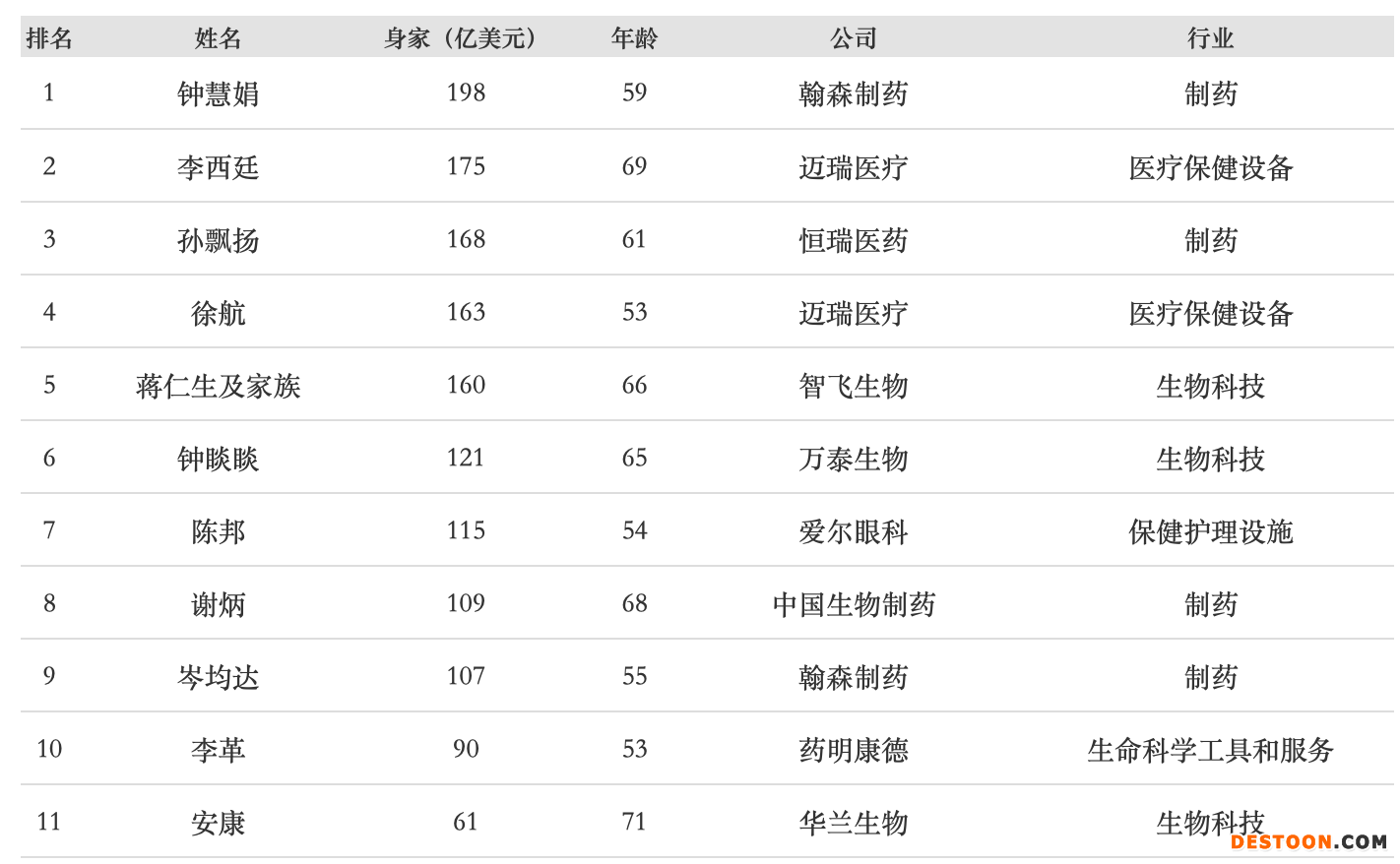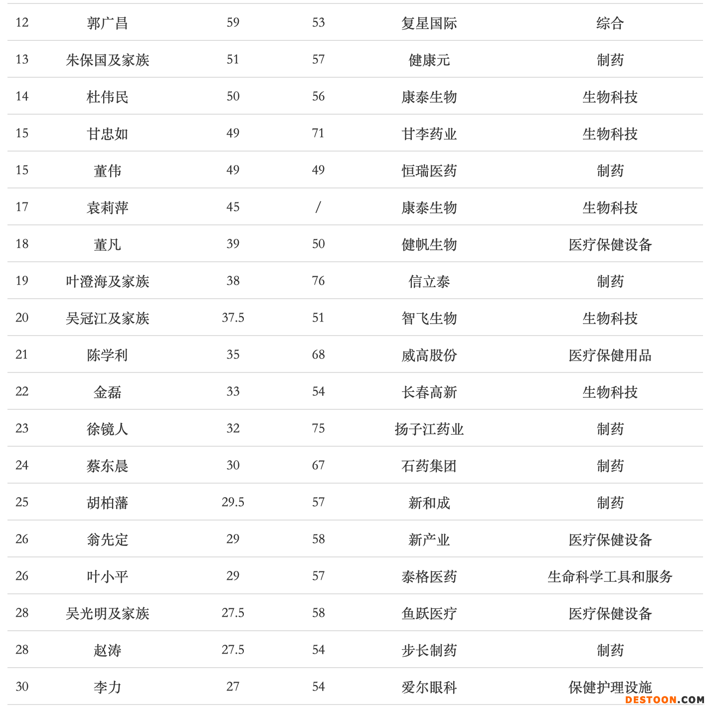 在醫(yī)療器械領(lǐng)域,第2、4 位是李西廷和徐航,二人都為邁瑞醫(yī)療聯(lián)合創(chuàng)始人。