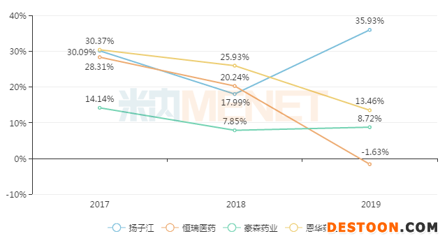 近年中國公立醫(yī)療機(jī)構(gòu)終端神經(jīng)系統(tǒng)化藥4家江蘇藥企增速表現(xiàn)