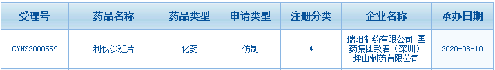 8月12日訊 日前,CDE官網(wǎng)顯示,瑞陽(yáng)制藥、國(guó)藥集團(tuán)致君(深圳)坪山制藥的利伐沙班片以仿制4類(lèi)提交上市申請(qǐng)獲得受理。米內(nèi)網(wǎng)數(shù)據(jù)顯示,近年利伐沙班片在中國(guó)公立醫(yī)療機(jī)構(gòu)終端銷(xiāo)售額快速增長(zhǎng),2019年突破超過(guò)25億元,同比增長(zhǎng)41.52%。