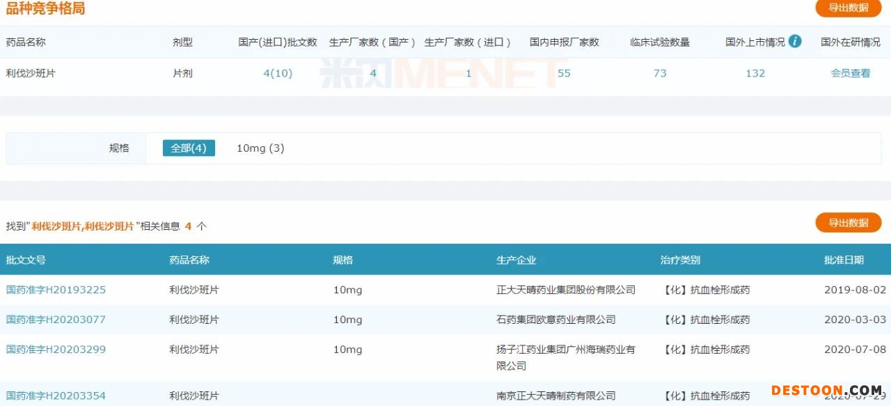資料顯示,利伐沙班片為一種口服直接抑制Xa因子的抗凝藥,具有臨床療效好,給藥方便,無(wú)需調(diào)整劑量及常規(guī)監(jiān)測(cè)等優(yōu)點(diǎn),為血栓性疾病的防治提供了另一用藥選擇。米內(nèi)網(wǎng)數(shù)據(jù)顯示,近年利伐沙班片在中國(guó)城市公立醫(yī)院、縣級(jí)公立醫(yī)院、城市社區(qū)中心以及鄉(xiāng)鎮(zhèn)衛(wèi)生院(簡(jiǎn)稱(chēng)中國(guó)公立醫(yī)療機(jī)構(gòu))終端銷(xiāo)售額快速增長(zhǎng),2019年突破25億元,同比增長(zhǎng)41.52%,生產(chǎn)廠家一欄顯示,僅拜耳一家在售。