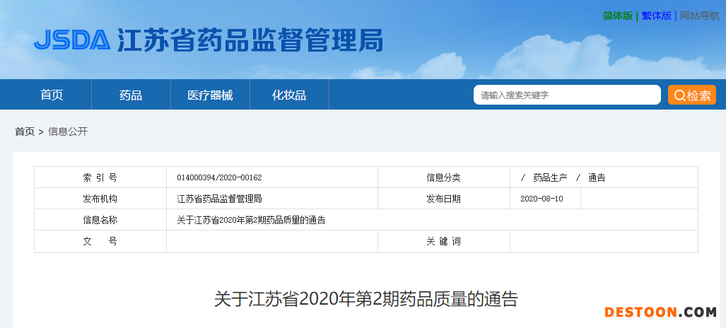 核心提示:8月13日訊 8月10日,江蘇省藥監(jiān)局發(fā)布了2020年第2期藥品質(zhì)量的通告(以下簡稱通告)?! ⊥ǜ骘@示,依據(jù)江蘇省藥品監(jiān)督管理局